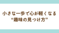 そんなときは、「嫌いじゃないこと」や「ちょっと気になること」に目を向けるだけで十分です。完璧な趣味を探すのではなく、小さな“気になる”から始めてみましょう。