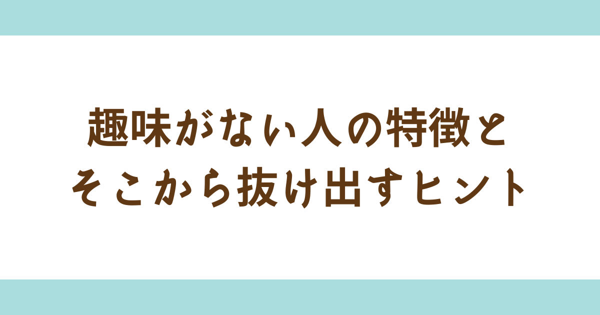 自分を振り返ってみると「趣味がない人には共通する特徴がある」と知り、自分を見つめ直すきっかけになりました。
