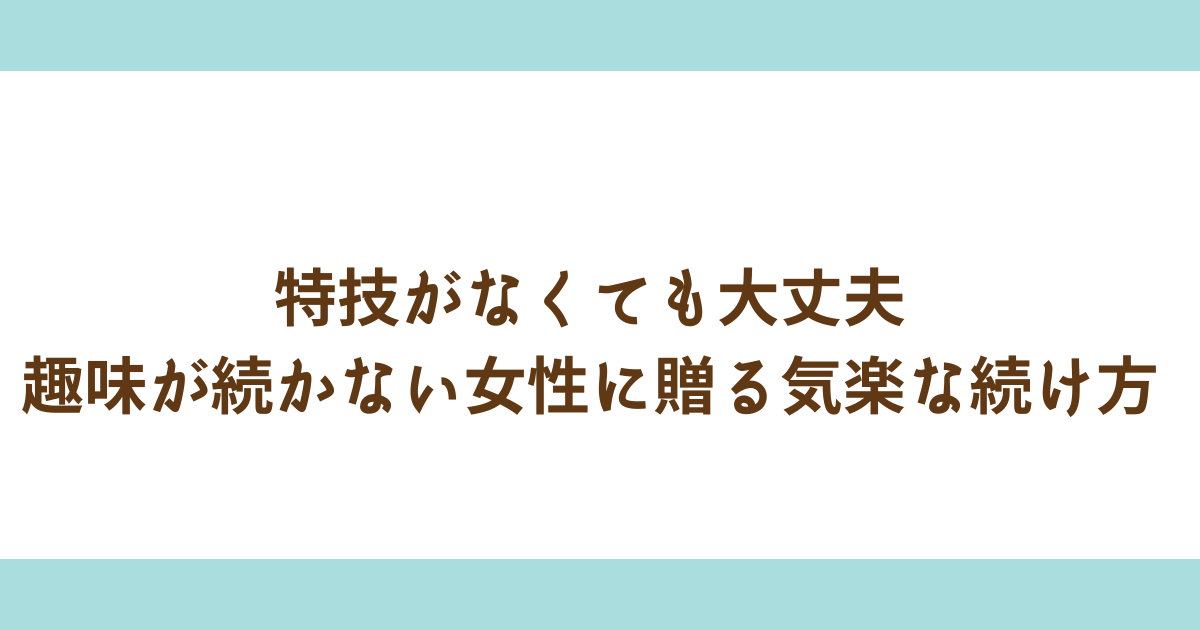 この記事では、趣味が続かない理由を整理しつつ、特技がなくても気楽に楽しめる趣味の選び方、続ける工夫や考え方を紹介します。